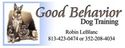 Whether you are looking for behavior modification/obedience in Tampa, Lutz, Clearwater or surrounding areas Good Behavior Dog Training is here for you and your Dog!! Call us @ 352-208-4034 to schedule an appointment today!!